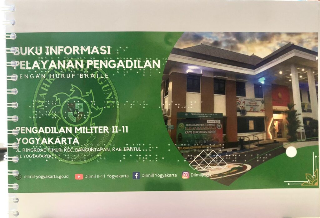 Pengadilan Militer II-11 Yogyakarta berkomitmen memperkuat pelayanan bagi masyarakat termasuk penyandang disabilitas dengan memberikan pelayanan terbaik termasuk memberikan fasilitas dalam sarana prasarana. Peningkatan pelayanan dengan menambahkan inovasi yaitu dengan pembuatan buku braile mengenai informasi pelayanan yang tersedia di Pengadilan Militer II-11 Yogyakarta yang diharapkan dapat membantu masyarakat terutama penyandang disabilitas untuk mengetahui informasi mengenai Pengadilan […]