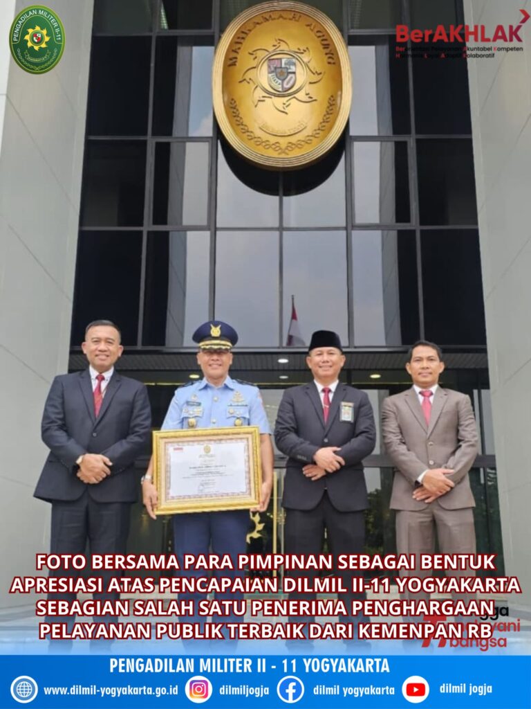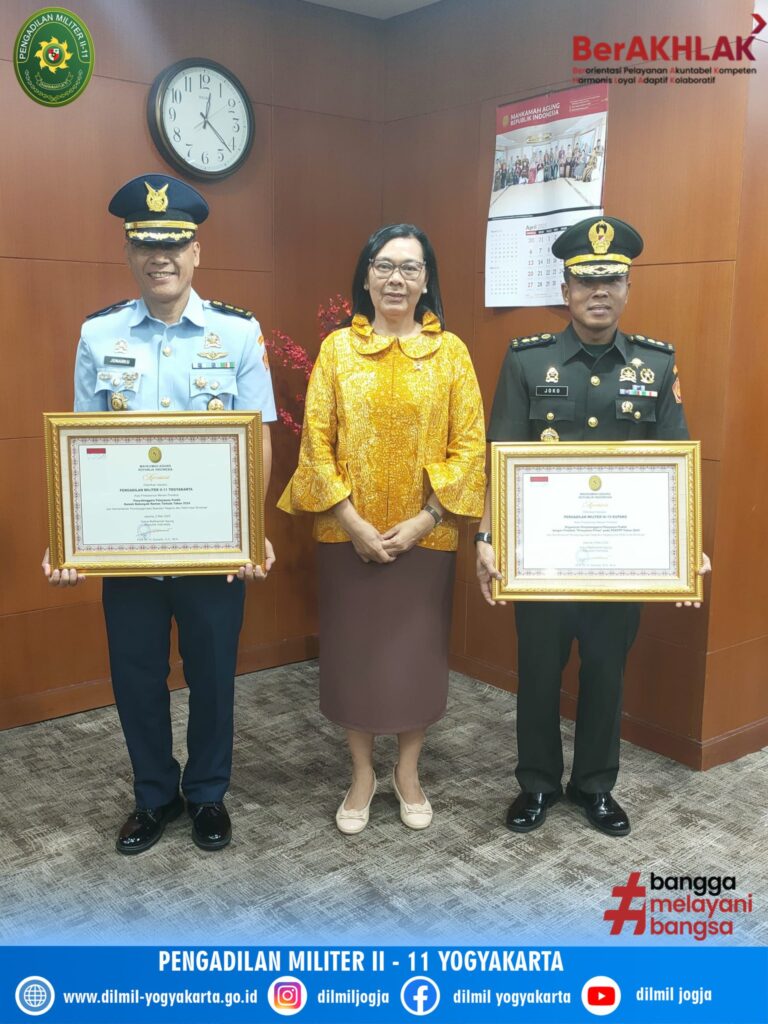 Dalam kesempatan tersebut, Kadilmil II-11 Yogyakarta juga melaporkan bahwa Pengadilan Militer II-11 Yogyakarta telah berhasil meraih piagam penghargaan sebagai salah satu Pengadilan yang ramah terhadap kelompok rentan.