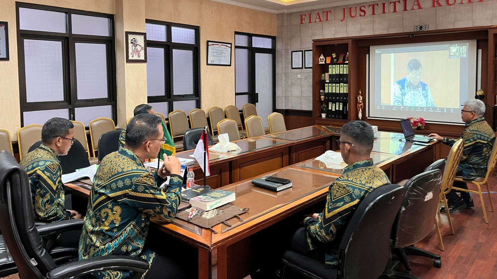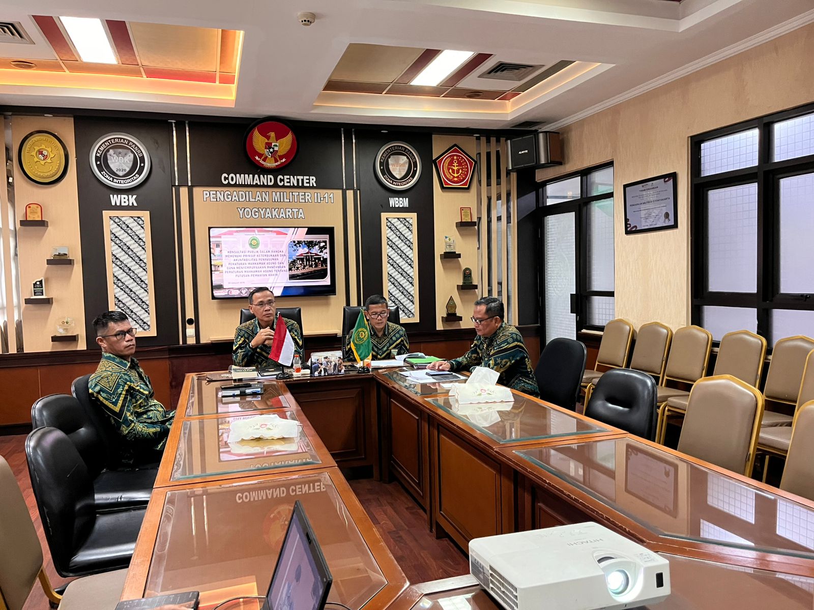 Kepala Pengadilan Militer II-11 Yogyakarta Kolonel Kum Jonarku, S.H., M.H. beserta Wakil Kepala dan para Hakim mengikuti kegiatan konsultasi publik dalam rangka memenuhi prinsip keterbukaan dan akuntabilitas penyusunan Peraturan Mahkamah Agung dan guna menyempurnakan Rancangan Peraturan Mahkamah Agung tentang Putusan Pemaafan Hakim secara daring