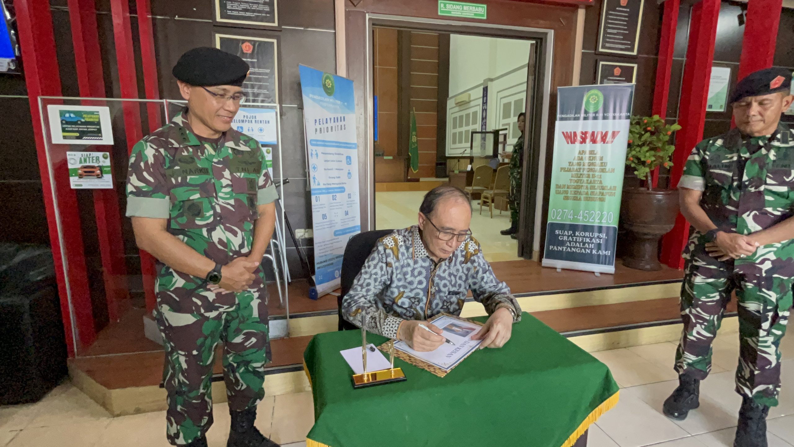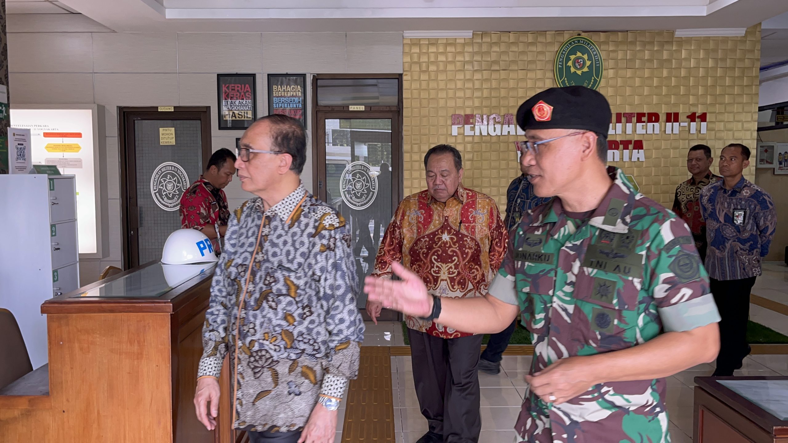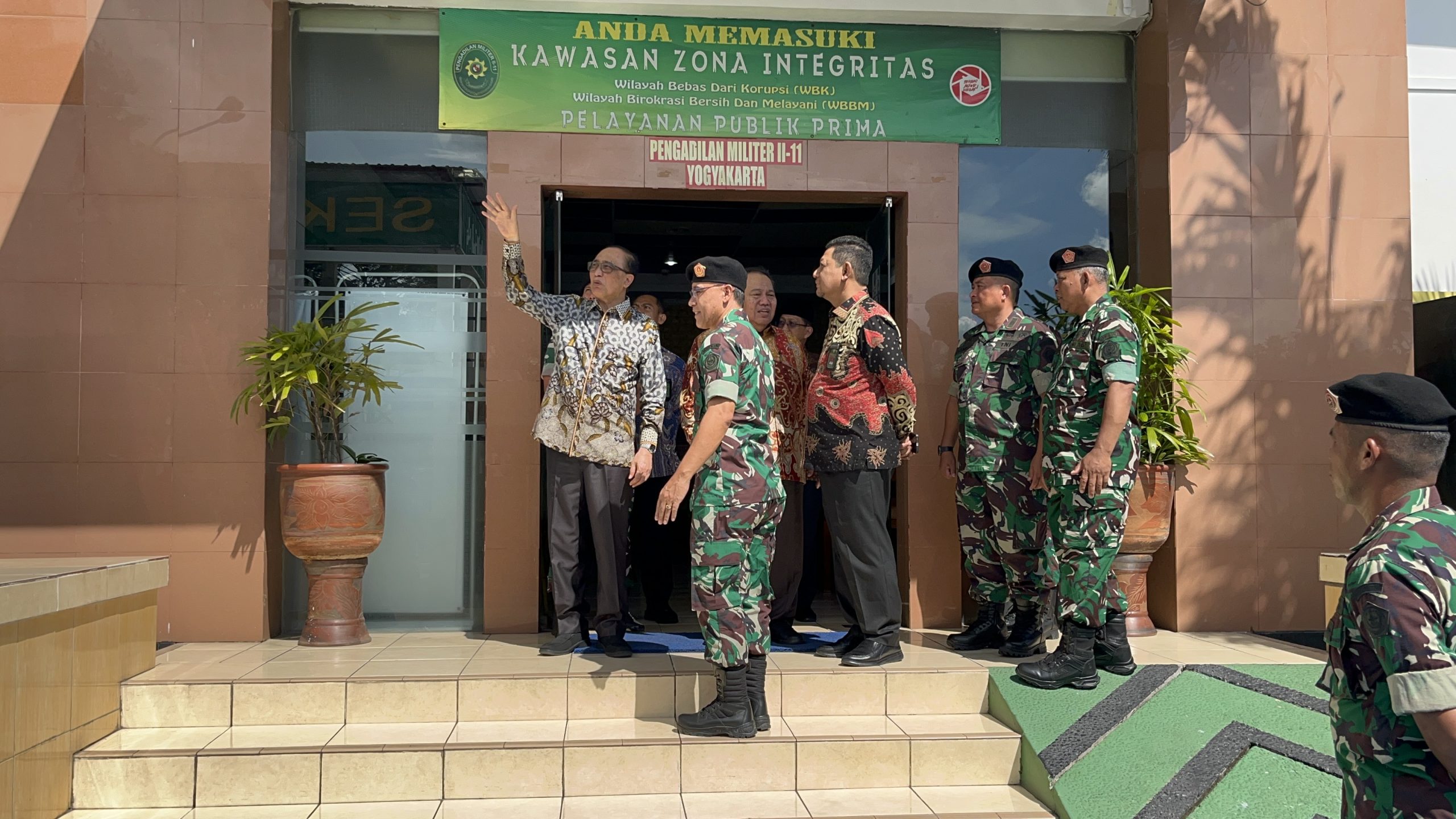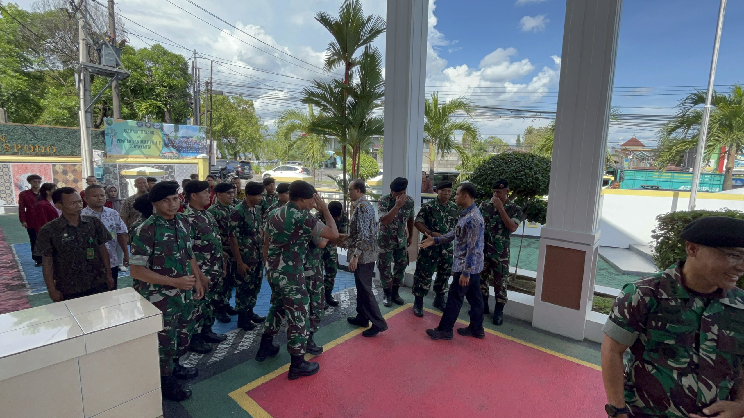 Kepala Pengadilan Militer II-11 Yogyakarta Kolonel Kum Jonarku, S.H., M.H. menyambut langsung kedatangan Ketua Mahkamah Agung beserta rombongan.