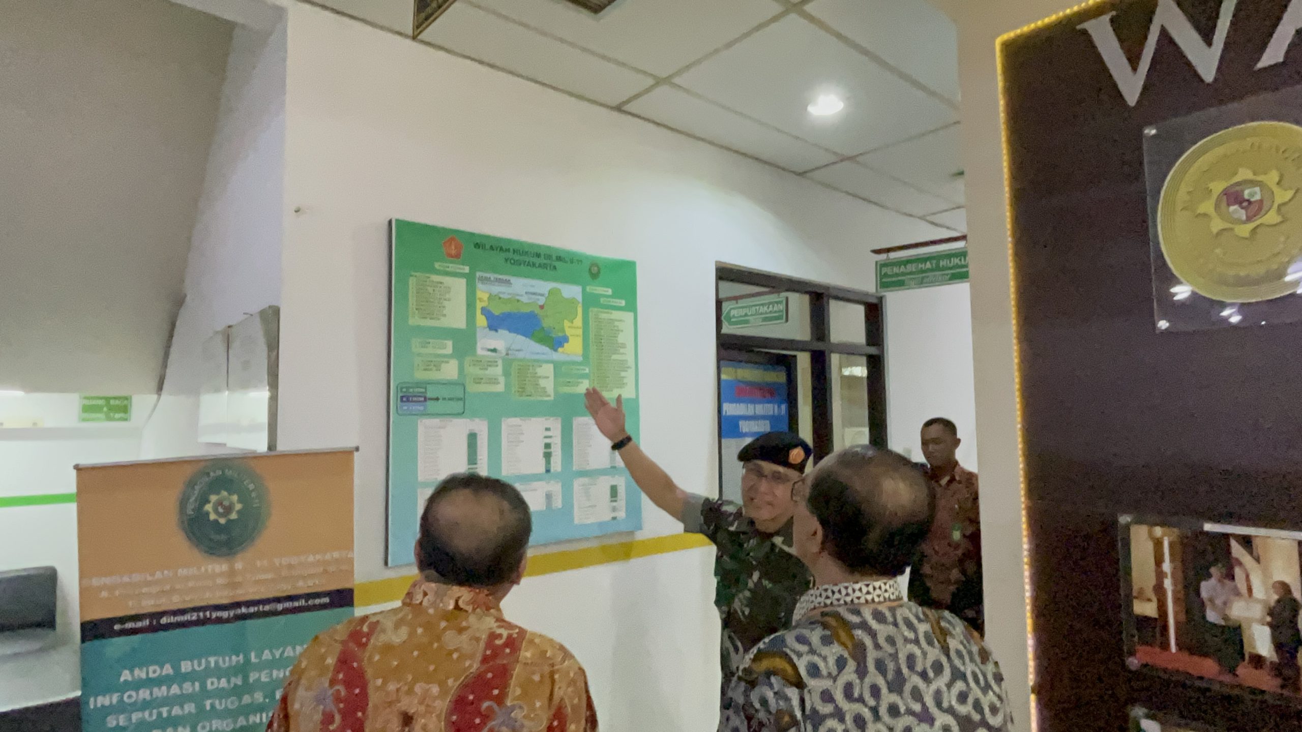 Acara kunjungan dilanjutkan dengan berkeliling kantor untuk menyaksikan langsung sarana dan prasarana yang tersedia di Pengadilan Militer II-11 Yogyakarta.