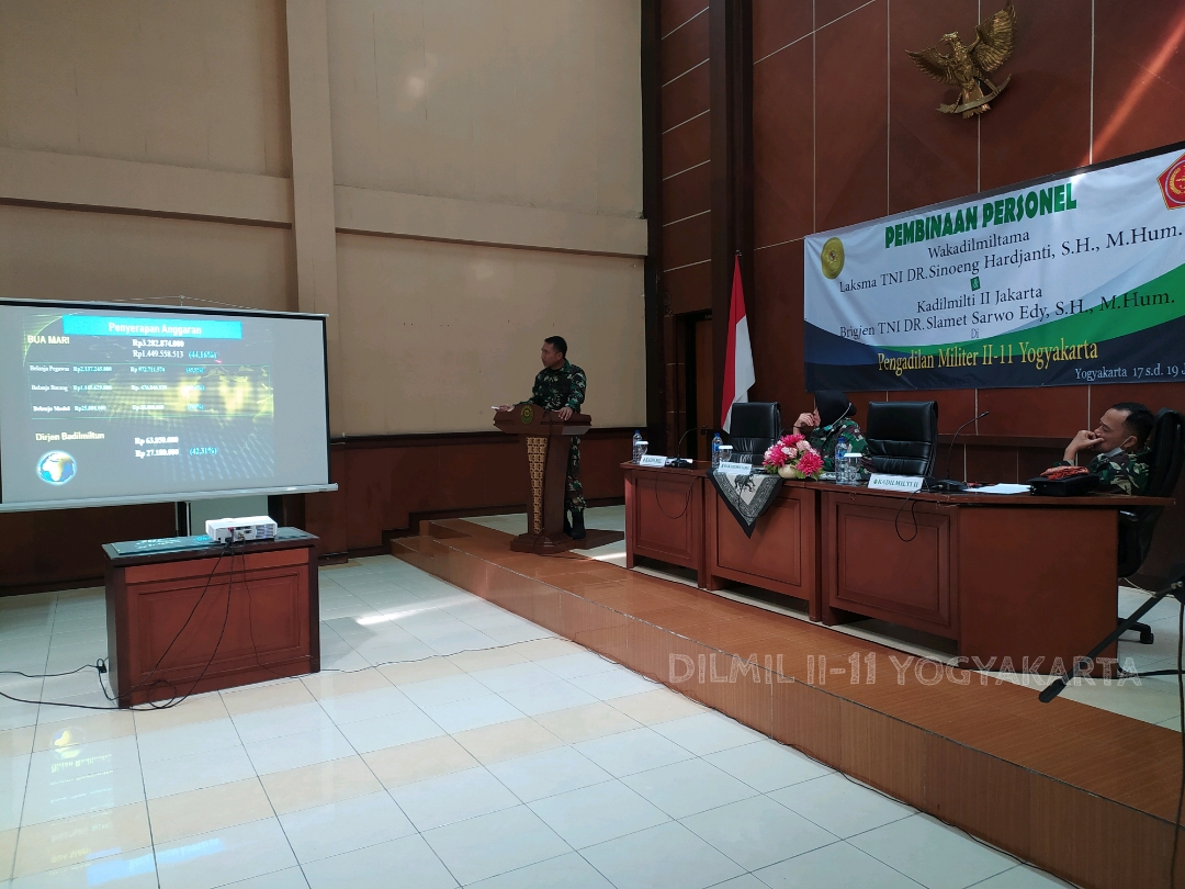 Pada hari Kamis s.d Jumat tanggal 18 s.d 19 Juni 2020 wakadilmiltama dan kadilmilti II Jakarta melaksanakan pembinaan personel di pengadilan militer II-11 Yogyakarta, dalam pembinaan tersebut diawali dengan sambutan Kadilmil II-11 Yogyakarta yang menyampaikan program kerja Pengadilan Militer II-11 Yogyakarta tahun 2020 dan laporan satuan.
