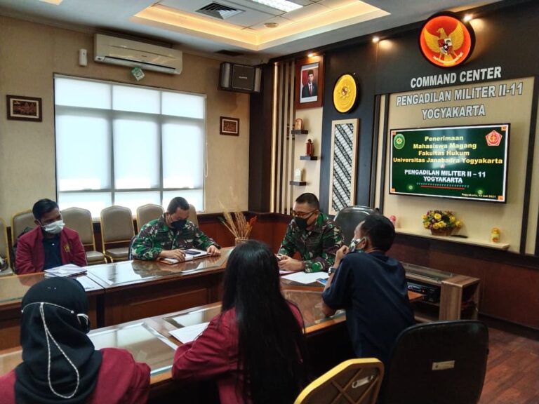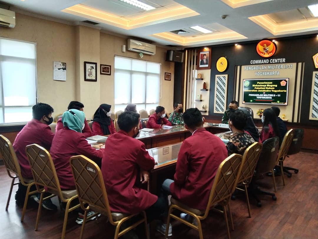 Kepala Pengadilan Militer II-11 Yogyakarta Letnan Kolonel Chk Fredy Ferdian Isnartanto, S.H., M.H. menerima mahasiswa Fakultas Hukum Universitas Janabara yang bermaksud untuk melaksanakan magang di Pengadilan Militer II-11 Yogyakarta.