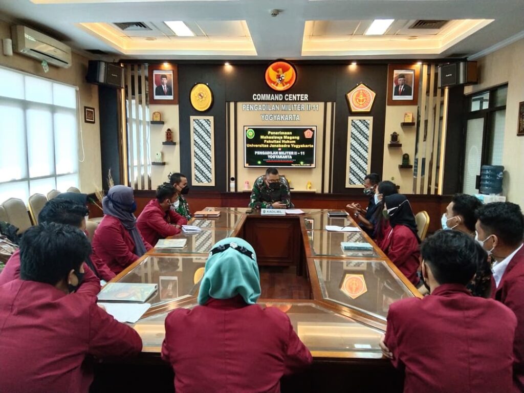 Dalam sambutannya Kepala Pengadilan Militer II-11 Yogyakarta menghimbau kepada mahasiswa untuk bersungguh-sungguh dalam melaksanakan kegiatan ini dan jadikan Pengadilan Militer II-11 Yogyakarta sebagai tempat menimba ilmu selain di lembaga pendidikan.
