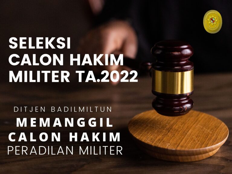 Dalam Rangka pengisian jabatan Hakim dilingkungan Peradilan Militer, Mahkamah Agung Republik Indonesia akan melaksanakan seleksi Calon Hakim Militer Tahun Anggaran 2022 dengan jumlah formasi sebanyak 40 (empat puluh) orang.