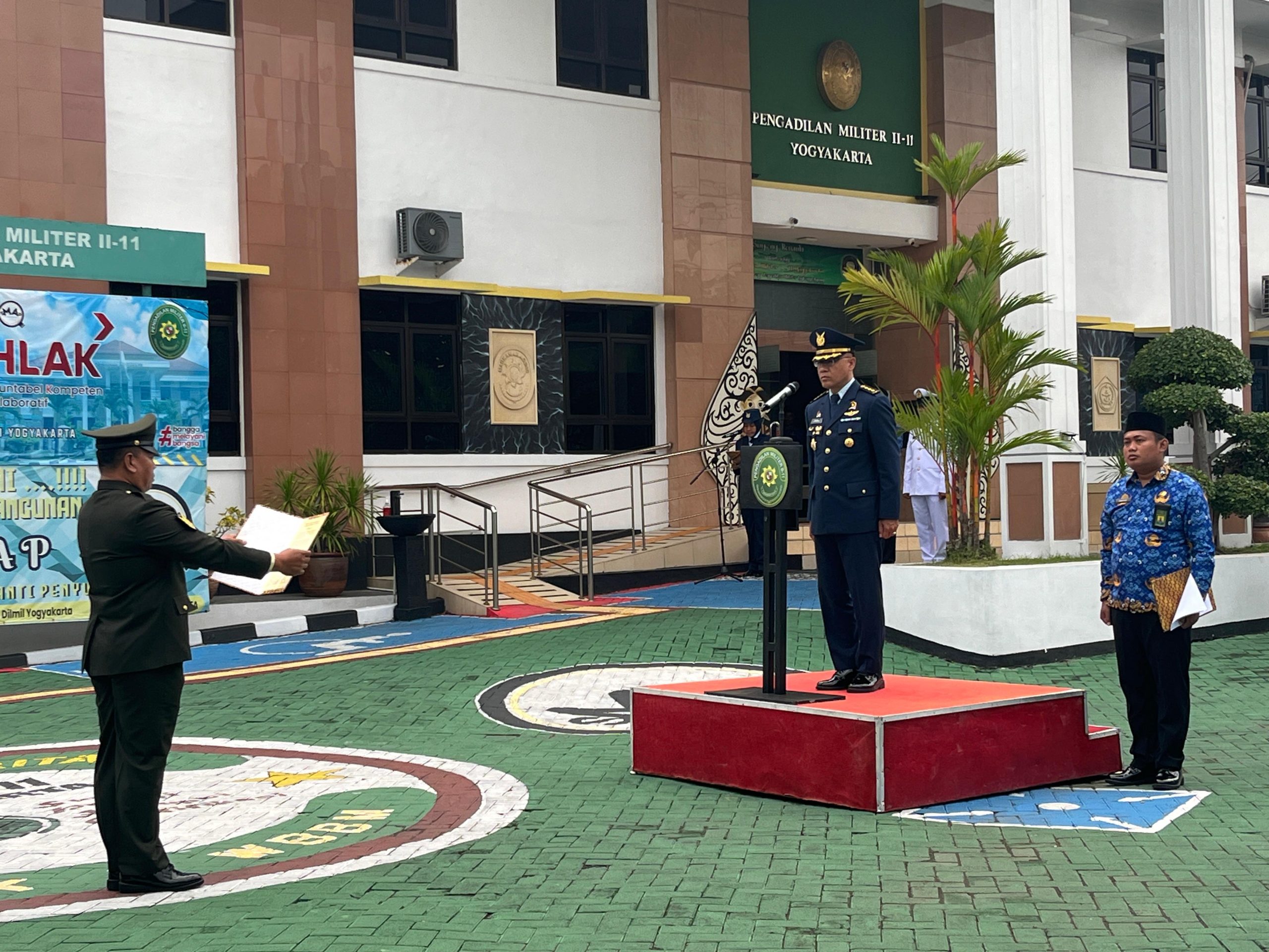Bertindak selaku Inspektur Upacara, Kepala Pengadilan Militer II-11 Yogyakarta Kolonel Kum Jonarku, S.H., M.H. dan selaku Komandan Upacara Letda Chk (K) Suryaningsih, S.H.